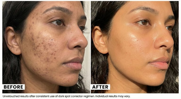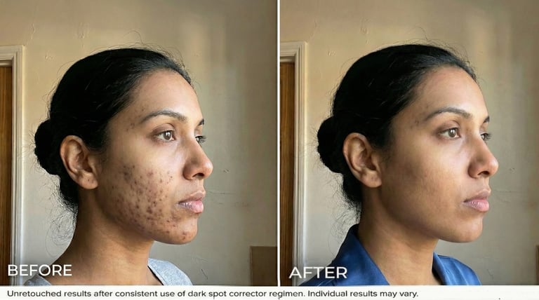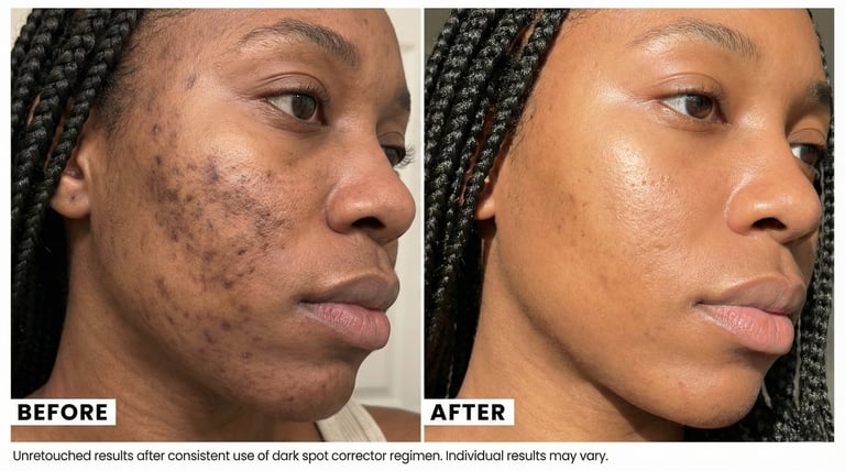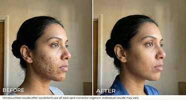 I was honestly skeptical at first, especially because the product seemed expensive and I had already spent so much money on treatments that never worked. Before buying, I booked a consultation and I’m so glad I did. The founder was patient, informative and answered every question, even reassuring me through WhatsApp whenever I needed clarity. I had tried multiple drugstore creams and even dermatologist prescribed products, but nothing ever improved my dark spots. So I finally decided to invest and give the Ultimate Fade Dark Spot Corrector a chance. My results weren’t overnight, but by the third week the difference was undeniable. My dark spots started fading, my skin looked smoother, and my complexion appeared visibly clearer. The change was honestly mind blowing. This is the first dark spot corrector that has ever worked for my stubborn hyperpigmentation, and it was worth every penny.